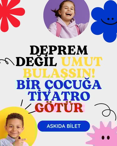Deprem bölgelerindeki çocuklar için umut taşıyoruz; konteyner kentlere sahne kuruyor, tiyatronun iyileştirici gücünü onların gülüşleriyle buluşturuyoruz.
